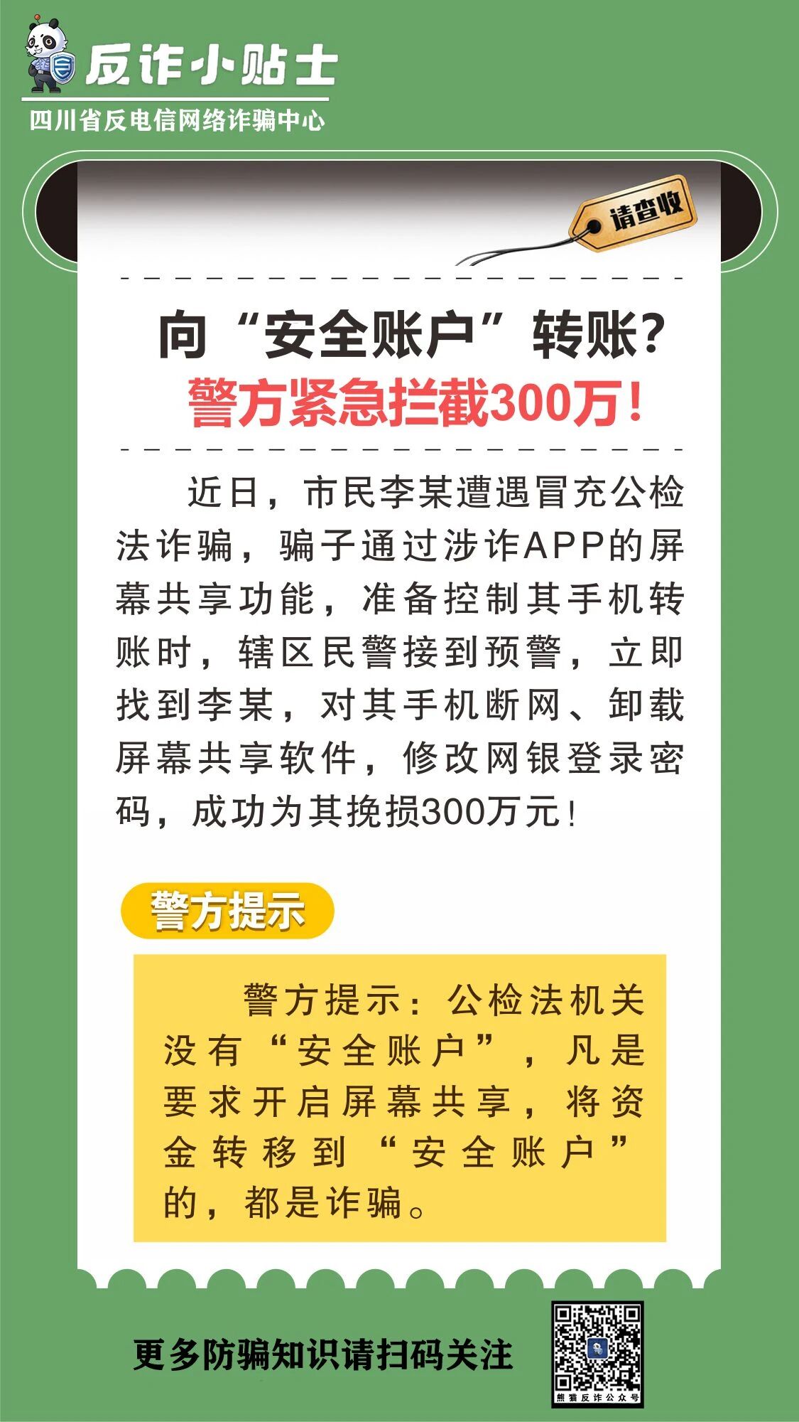 公检法机关没有“安全账户”,凡是要求开启屏幕共享,将资金转移到“安全账户”的,都是诈骗。