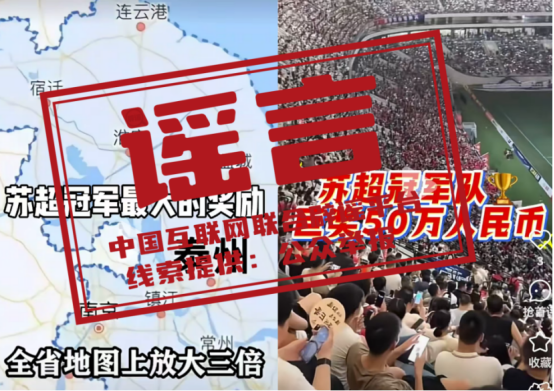 辟谣:地图放大三个字号?奖金五十万?这些网传苏超冠军队奖励都是假的!