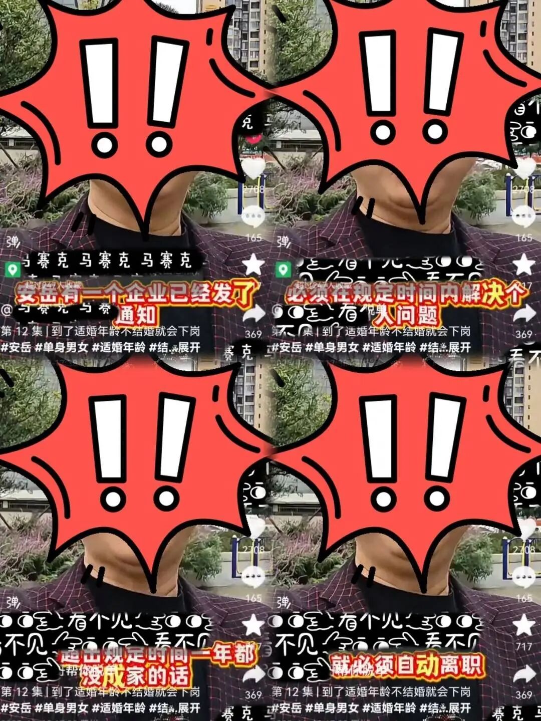到了适婚年龄不结婚就会下岗?近日,四川资阳安岳县男子杨某在短视频平台发布消息称,当地一家企业已经发通知,必须在规定时间内解决个人问题,超出规定时间一年都没成家的话,就必须自动离职。