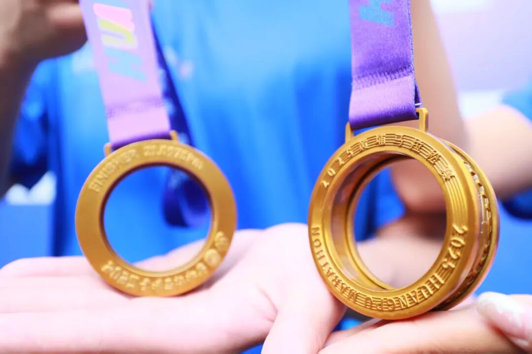 据悉,2025黄埔马拉松完赛奖牌为圆环结构,其设计灵感源于精密齿轮轴承,致敬黄埔深厚的制造业根基。奖牌中央的圆环内圈镌刻的开拓者雕像、科学城地标、知识城九龙湖等图案,转动时交替显现,宛如一条缩微的“城市发展能量带”,隐喻着个人拼搏精神与城市前进动力的同频共振。