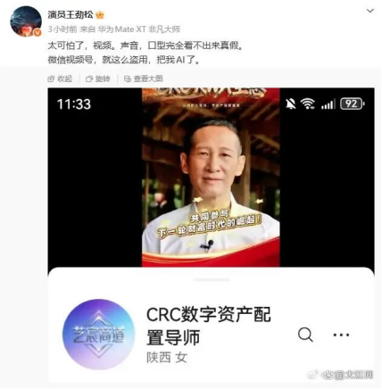 一是演员王劲松的形象被AI深度伪造,制成财富诈骗视频,逼真到其本人惊呼“连我家人都分不清”。